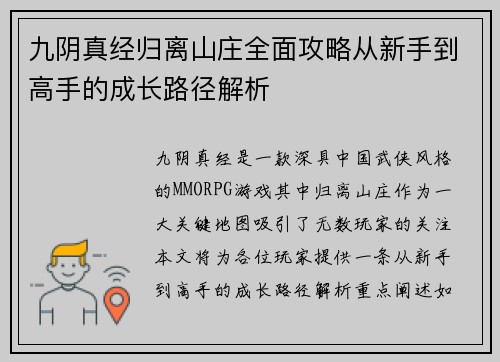 本文围绕《龙女刺杀系加点全面解析与实战技巧提升宝典》展开讨论。文章从龙女刺杀系加点的基本思路、技能选择的策略、装备搭配的要点以及实战技巧的运用四个方面,对龙女刺杀系的玩法做了详尽的分析与解读。本文不仅...